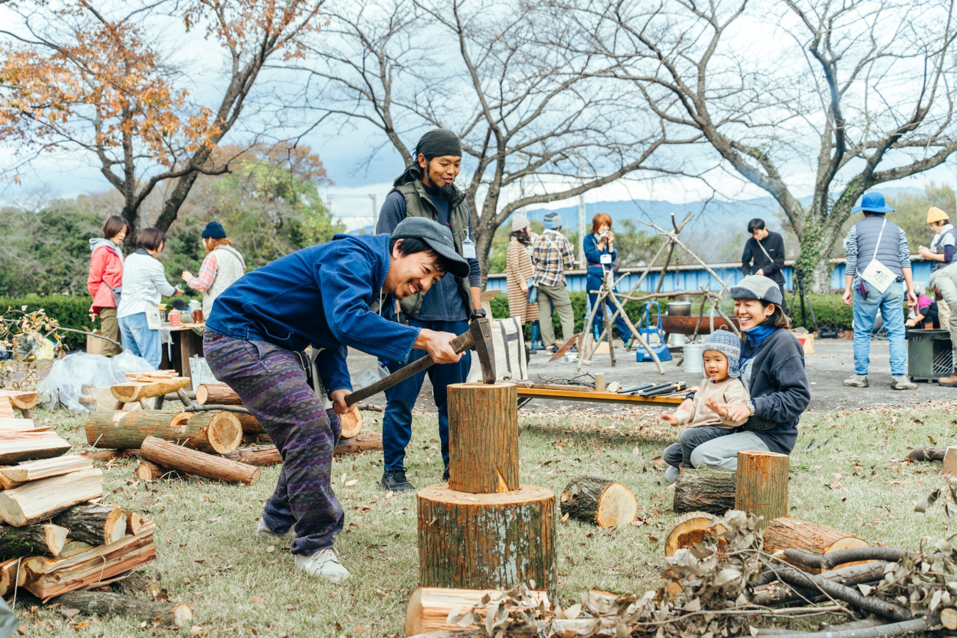 薪割りに挑戦するもヨシ!薪割りを視て、聴いて、嗅いで、触って、味わうもヨシ!薪スペシャリストが常駐します!!