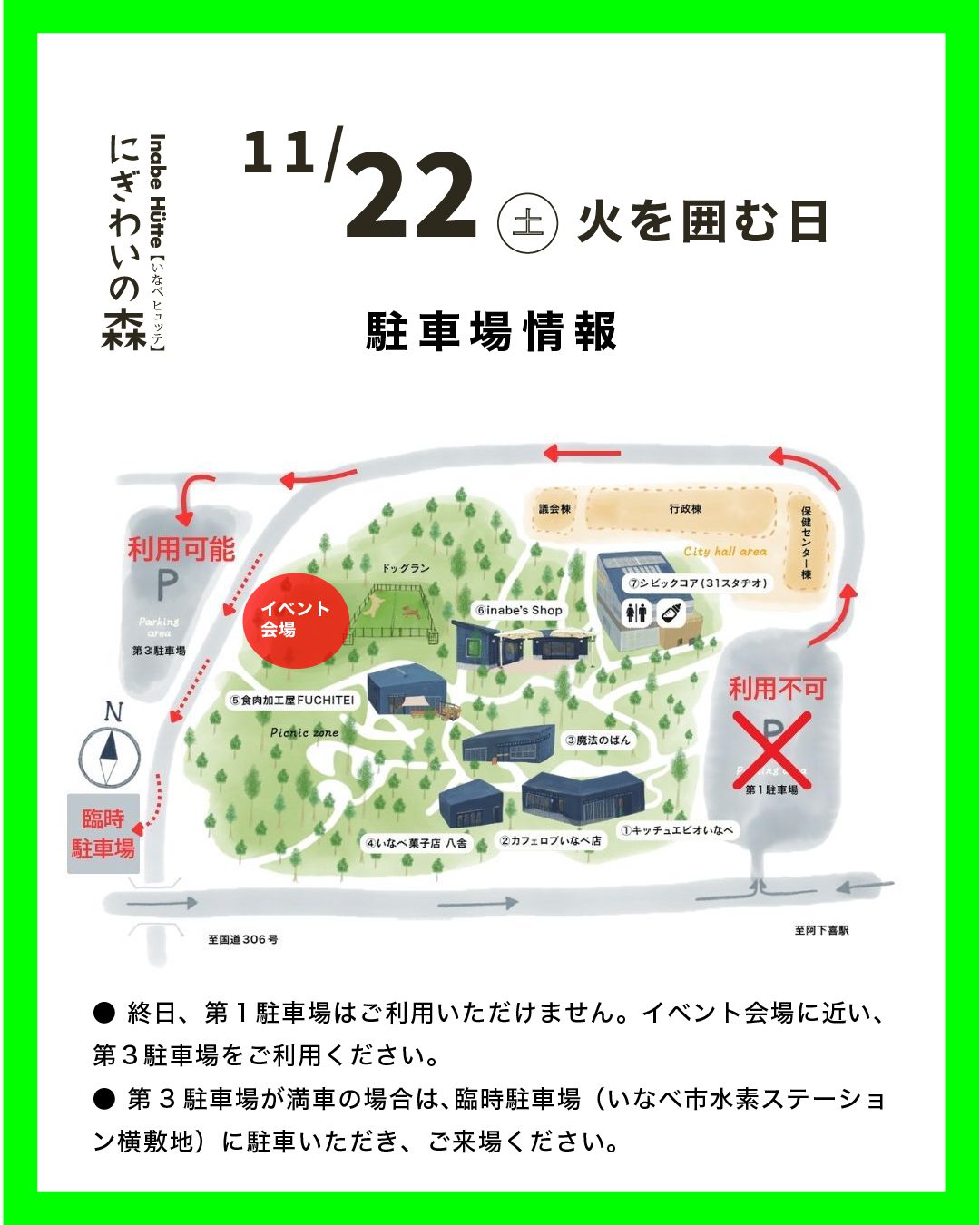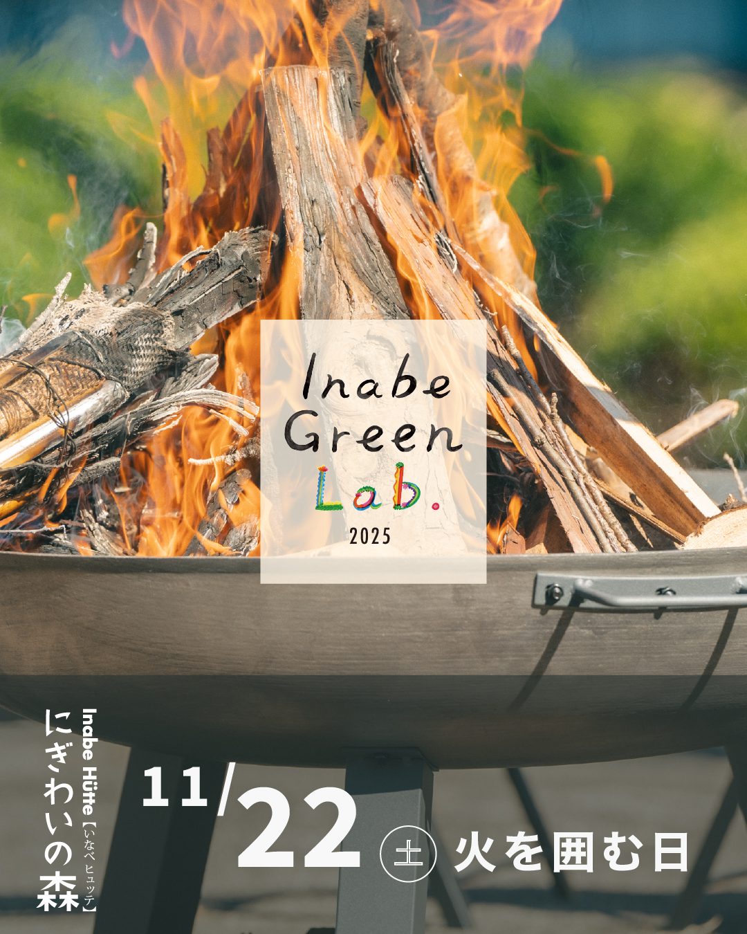 今年で3年⽬となる、Inabe Green Lab.『⽕を囲む⽇』、今回は「にぎわいの森」にて開催します!