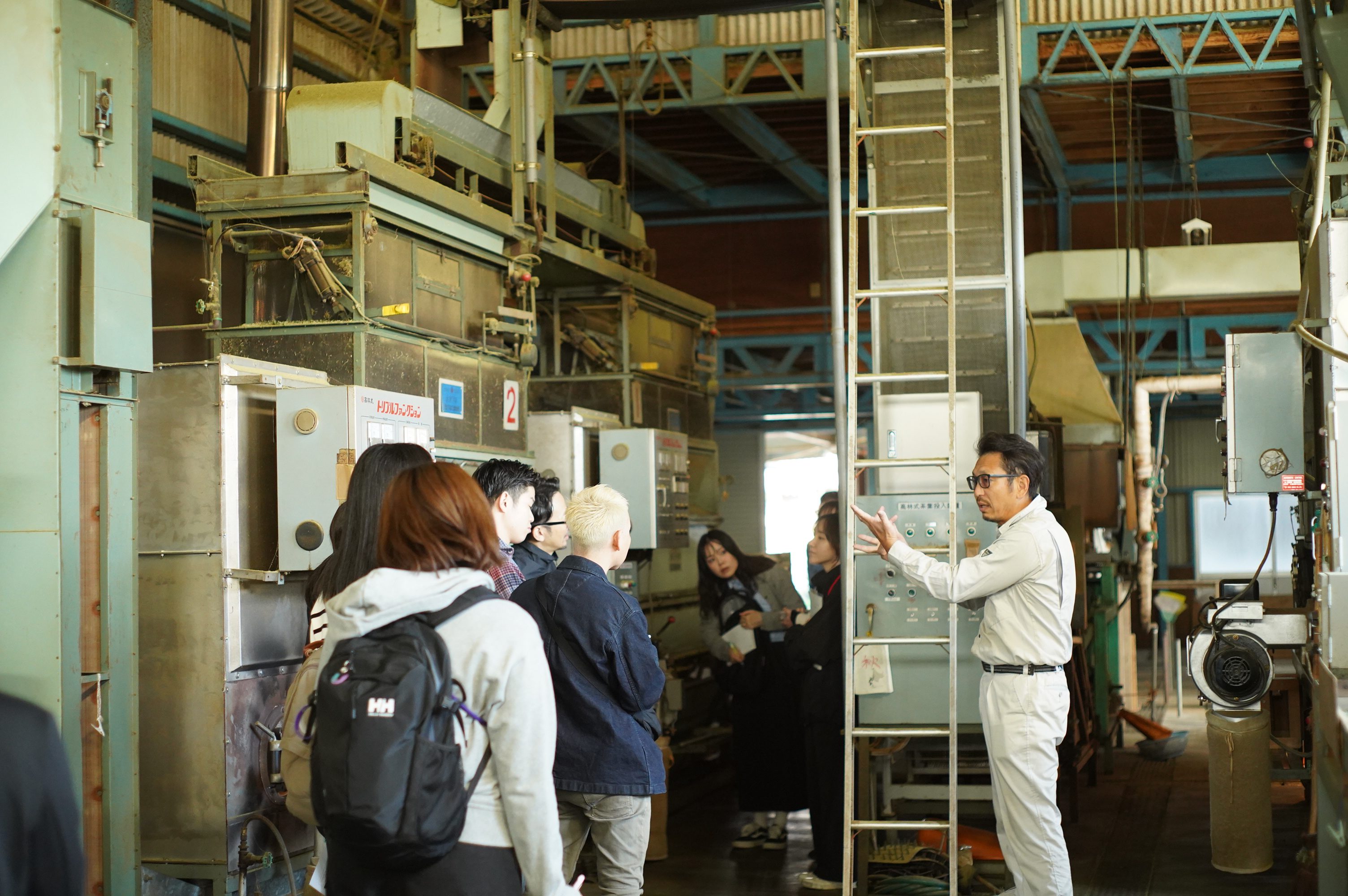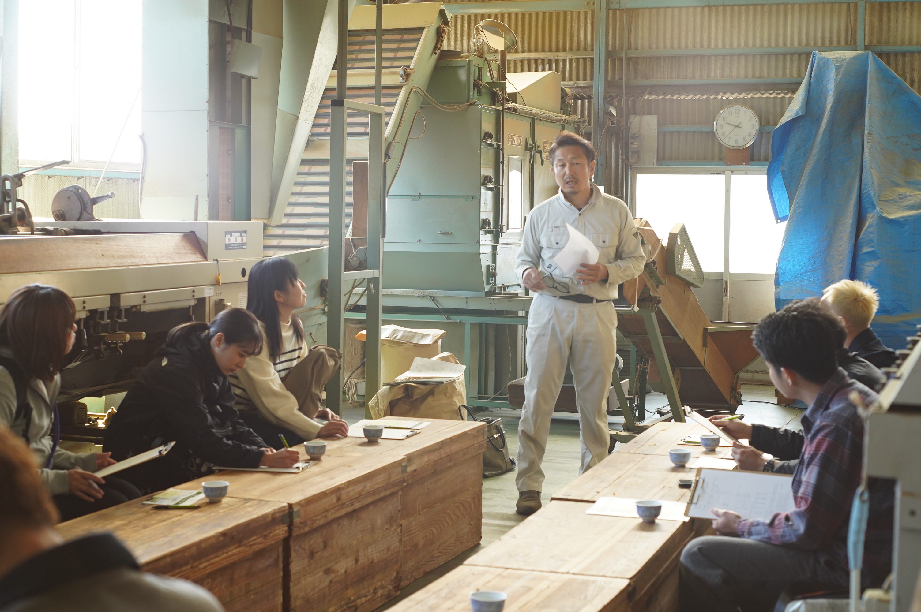 普段はなかなか入れない茶工場に入り、お茶の葉が収穫されてから茶葉に加工されるまでの工程を学びました。