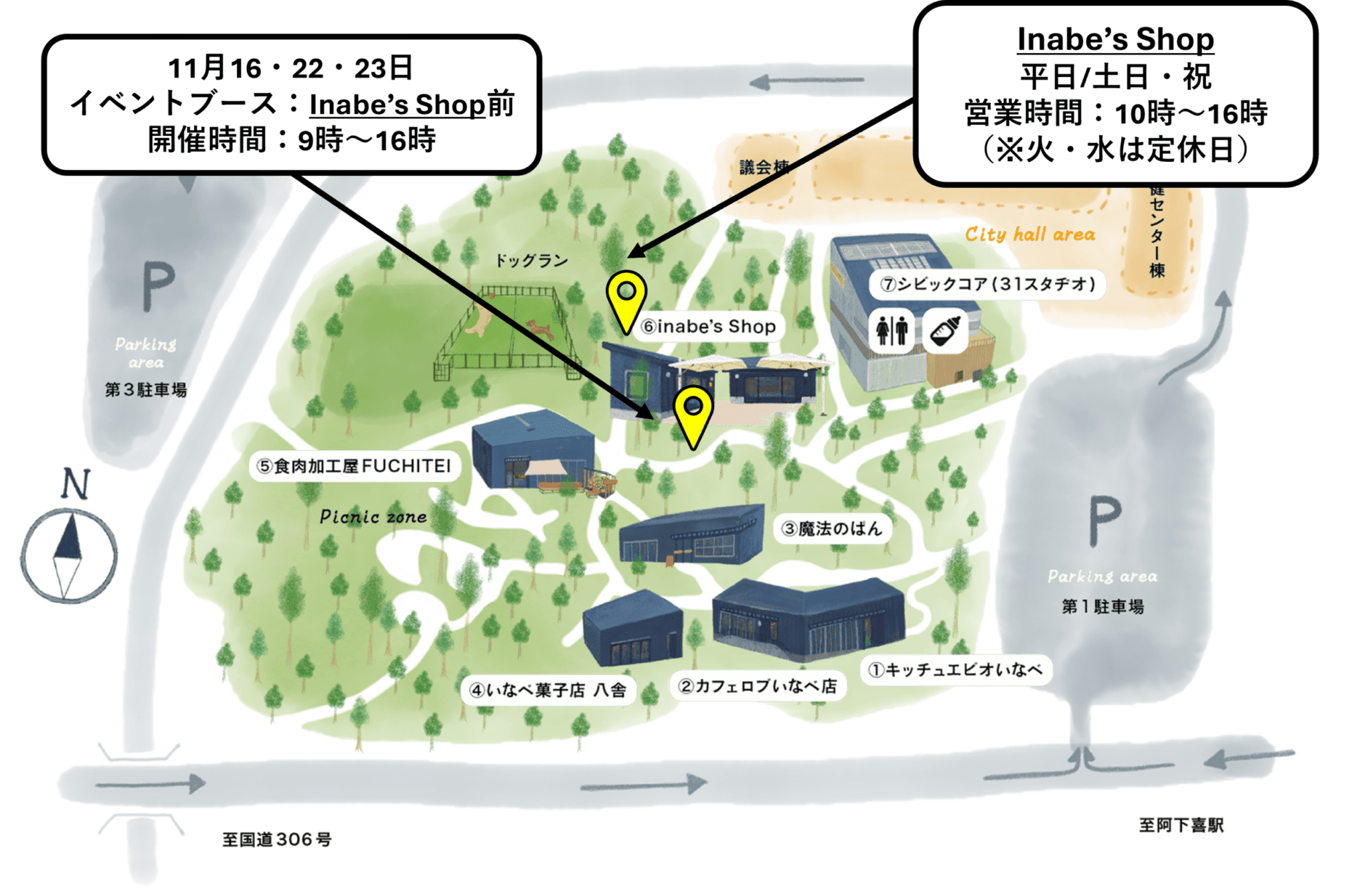 プレゼントの受け取りは、にぎわいの森内の店舗「Inabe`s Shop」へお越しいただくか、11月16日(土)、22日(土)、23日(日)に開催される「モリソダテアプリ体験会」(参加無料、登録不要)のにぎわいの森内に設置されるブースにて受け取りが可能です。(各ブースの場所については後日発表)